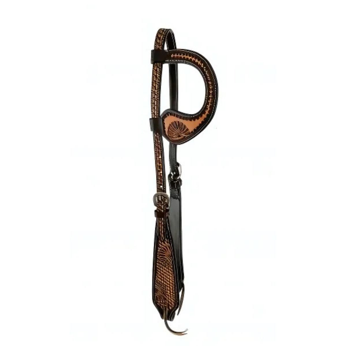 Showman ® Two Tone one ear headstall with half floral tooled design Sale